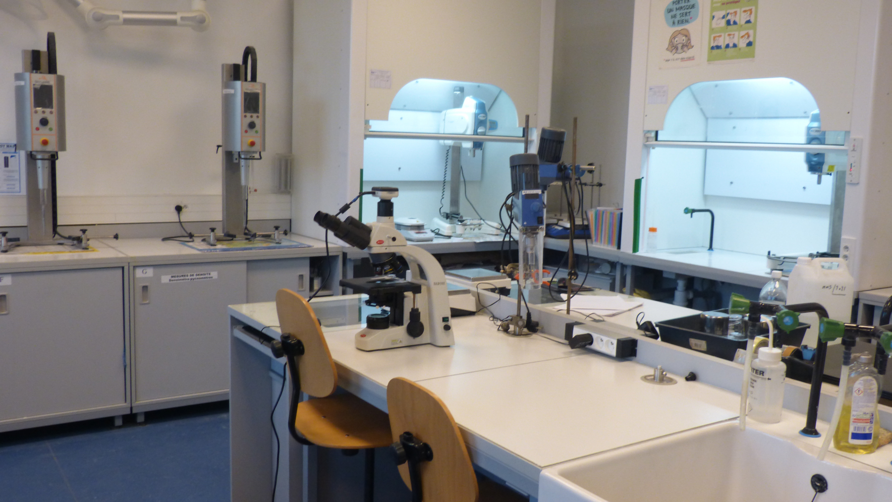 Une large partie de l’emploi du temps est réservé aux travaux pratiques (environ 10 h par semaine) afin de donner aux étudiants le maximum d’expérience et de maitrise des appareils couramment rencontrés au laboratoire.